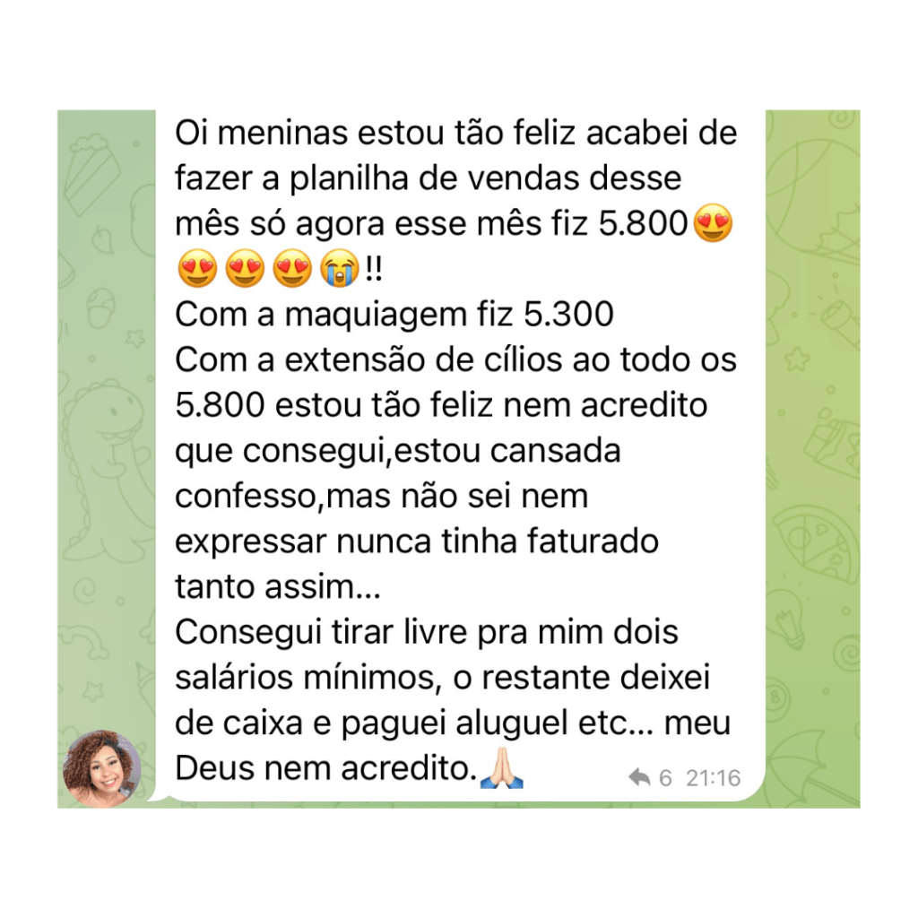 A Walquíria fatura até 15 mil reais e hoje é instrutora na Embelezze.